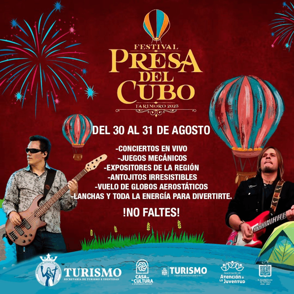 La magia, la música y la aventura se fusionan en la edición 2025 del Festival Presa del Cubo, que se celebrará el próximo 30 y 31 de agosto en el municipio de Tarimoro. Este evento promete experiencias inolvidables para todos los asistentes, combinando naturaleza, tradición y entretenimiento.