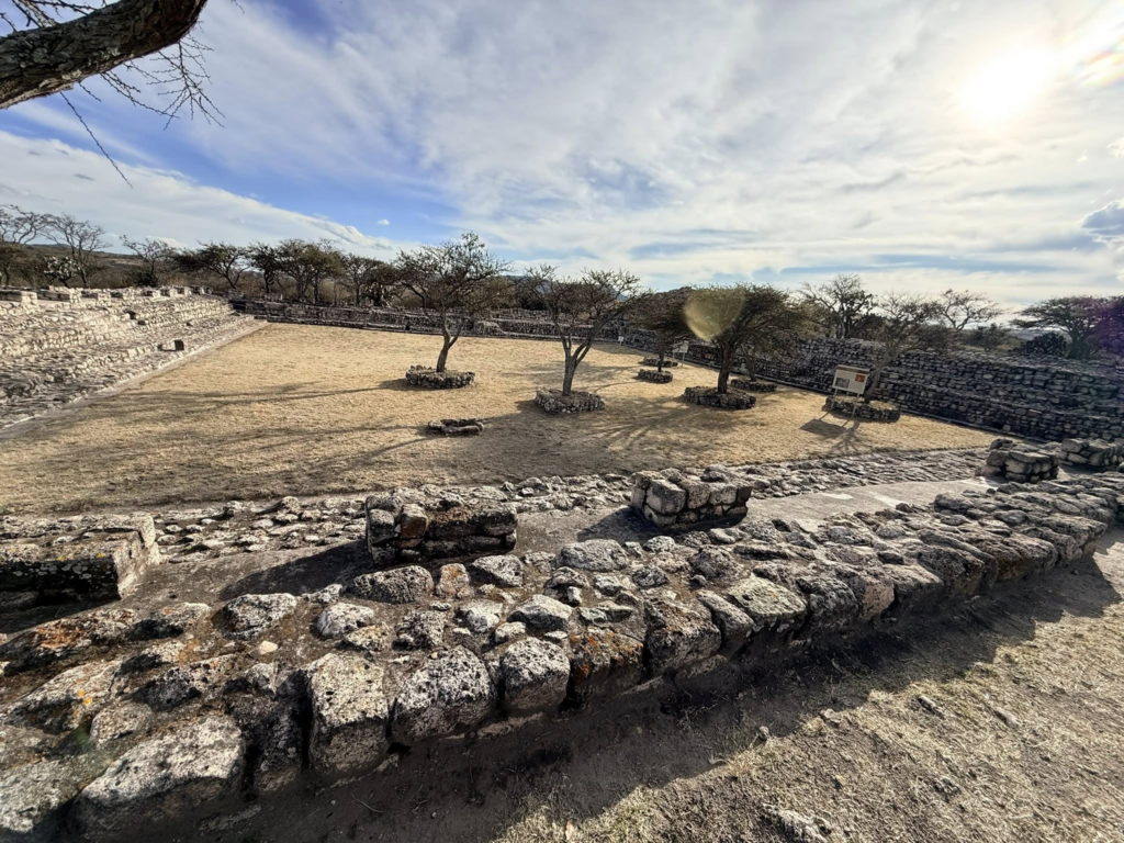 El conjunto ceremonial se complementa con una calzada sagrada de 840 metros que conecta las cañadas con el Complejo A, alineada al rumbo del amanecer y al recorrido solar en la bóveda celeste. El entorno natural, con más de 150 especies de plantas y cerca de 40 de animales, conserva un paisaje prácticamente intacto que ayuda a comprender la relación entre la cosmovisión y el territorio.